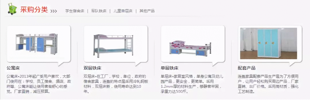 當(dāng)然少不了各式各樣的款式的鐵架床,還有就是各種場(chǎng)合的床等,在品類和應(yīng)用場(chǎng)景上滿足用戶,這個(gè)是所有目標(biāo)客戶的基本需求!