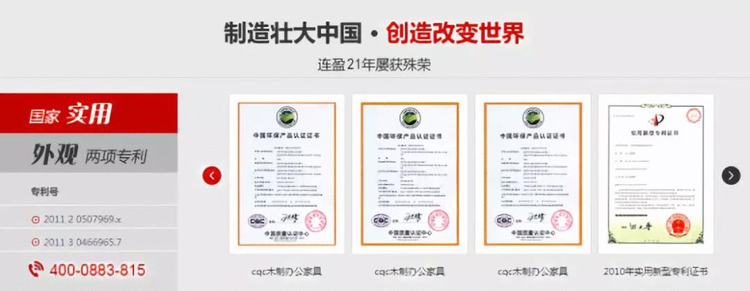 最后借助多項(xiàng)家具專業(yè)領(lǐng)域的國(guó)家專利的技術(shù)背書,讓目標(biāo)客戶感受到連盈家具的技術(shù)保障,進(jìn)一步說(shuō)道目標(biāo)客戶心坎去!